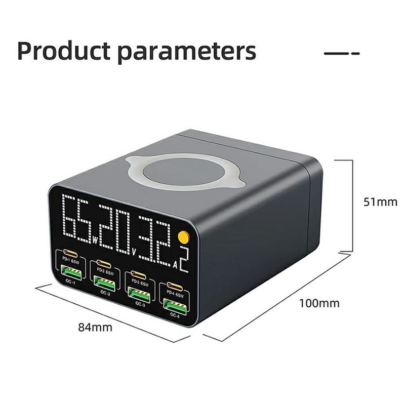 - Portar: 4 × PD, 4 × QC, 1 × trådlös laddning