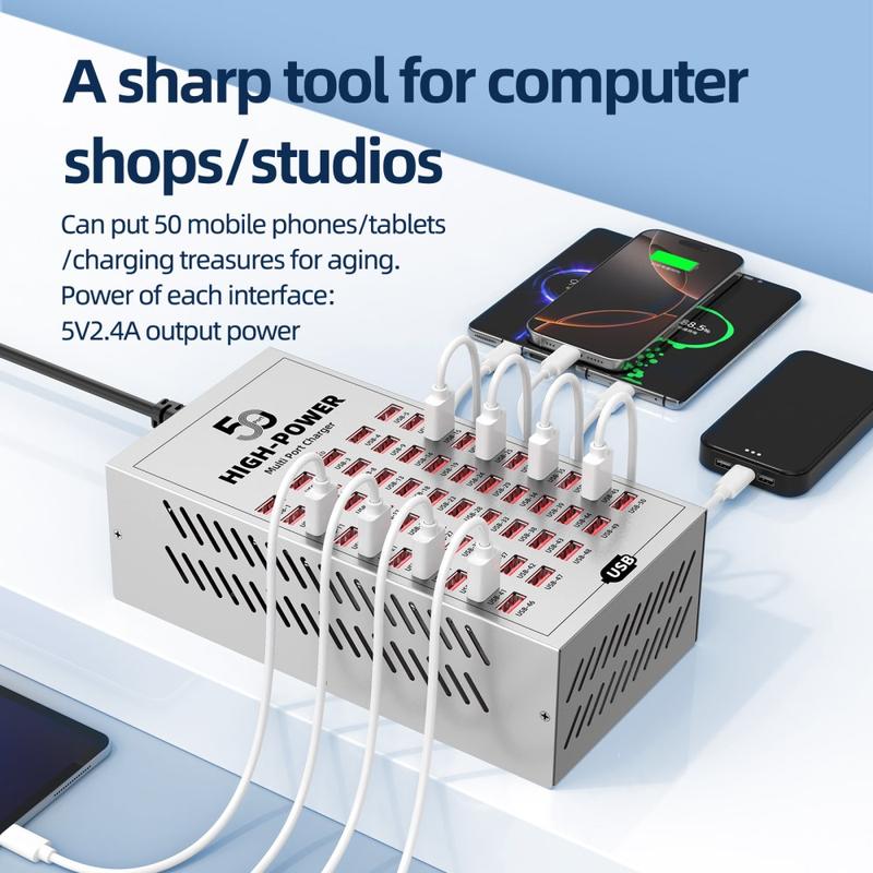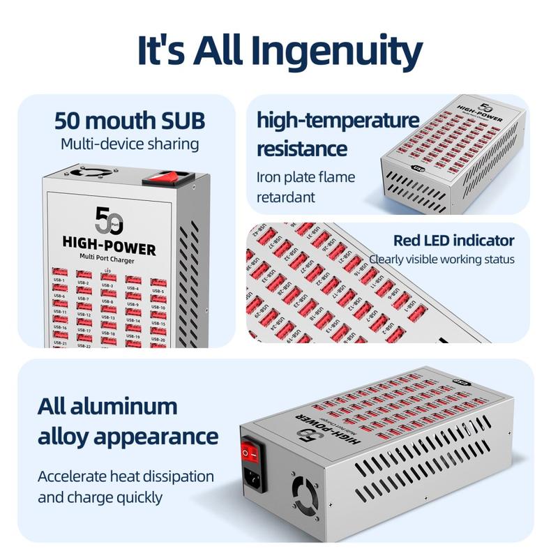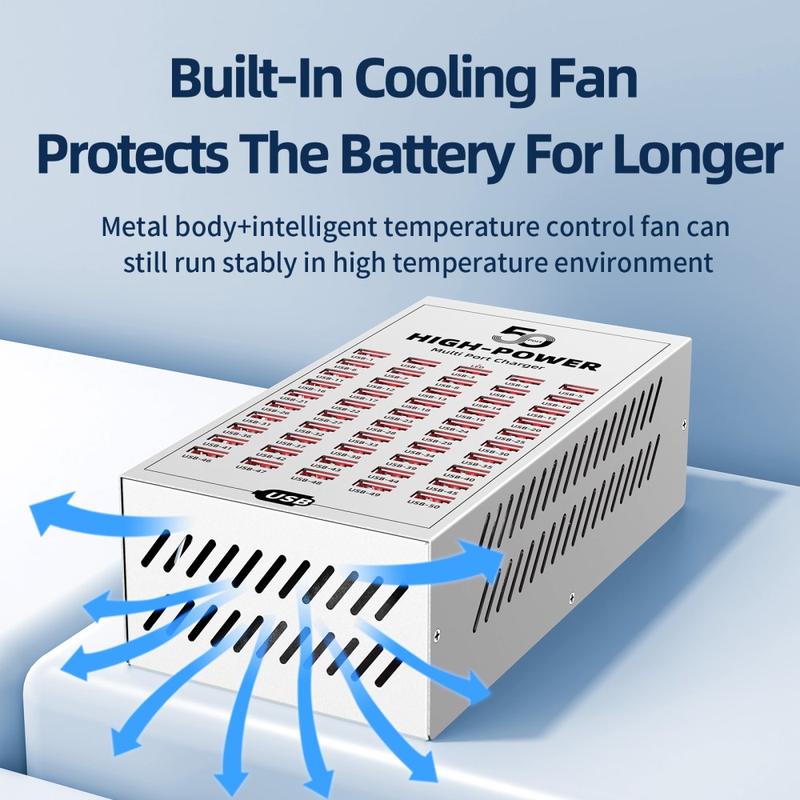 - 50 USB-portar för samtidig laddning av flera enheter i kommersiella och industriella miljöer