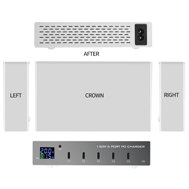 WLX-X6P 140W stationär laddningsstation - 6-portars GaN USB-C snabbladdare för bärbara datorer, smartphones och surfplattor (EU-kontakt)