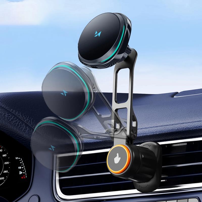 Ladda din telefon trådlöst och håll den säkert på plats medan du kör med Wozinsky WCT5-6S2Y. Detta MagSafe-kompatibla bilfäste levererar upp till 15W snabbladdning och har 20 kraftfulla N52-magneter för ett stabilt grepp, även på ojämna vägar. Den medföljande magnetringen säkerställer kompatibilitet med Qi-aktiverade smartphones utöver iPhone 12-serien och nyare. En inbyggd kylfläkt upprätthåller optimala laddningstemperaturer, medan den justerbara armen erbjuder 360° rotation och 180° lutning för den perfekta betraktningsvinkeln. Den är utformad för montering i luftventiler och passar både horisontella och gallerformade ventiler, vilket ger en kombination av bekvämlighet, prestanda och ett snyggt utseende.