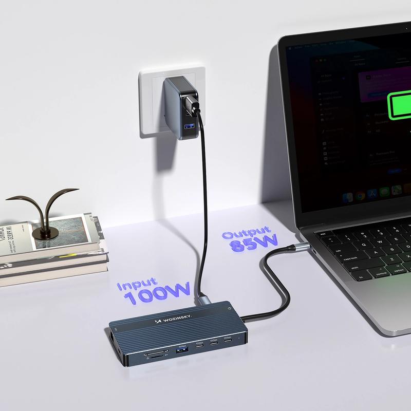 Wozinsky WDS03Y5S är en sann allt-i-ett-anslutningslösning. Med stöd för tre skärmar, blixtsnabba 10 Gbps USB-portar, kraftfull 100 W PD-laddning och omfattande portval är den perfekt för yrkesverksamma som behöver maximal produktivitet. Dess aluminiumkonstruktion garanterar hållbarhet och effektiv värmehantering för långsiktig, stabil prestanda.