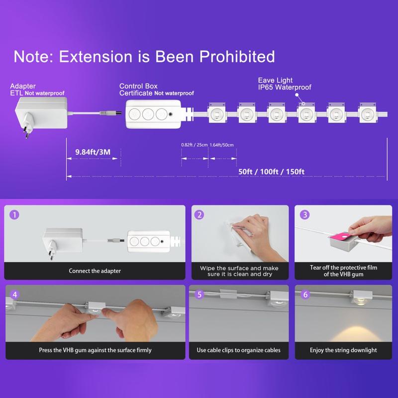 WY021 Vattentät smart takfotslampa för utomhusbruk / ljusslinga med musiksynkronisering med appstyrning, röststyrning