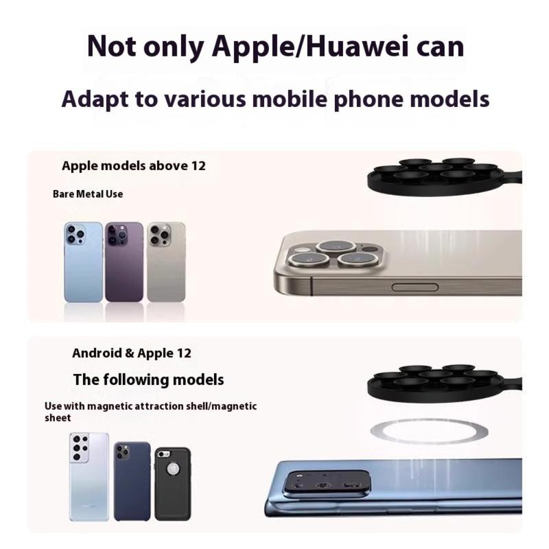 Tolv N52 neodymmagneter samarbetar med en tät sugkoppsuppsättning i silikon för att låsa fast din telefon på glas, kakel, metall eller blanka instrumentbrädor på några sekunder. Det slutna magnetfältet håller fast enheter på upp till 1 kg utan att störa GPS- eller 5G-mottagningen, medan den vakuumliknande sugkoppen griper tag även på ojämna vägar.