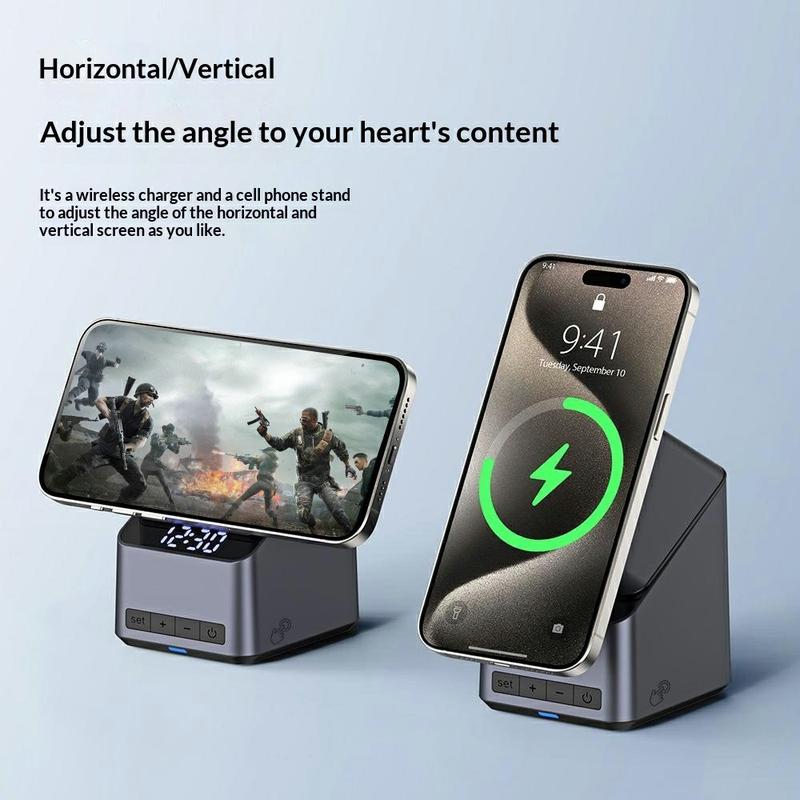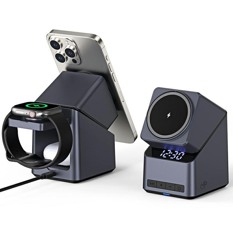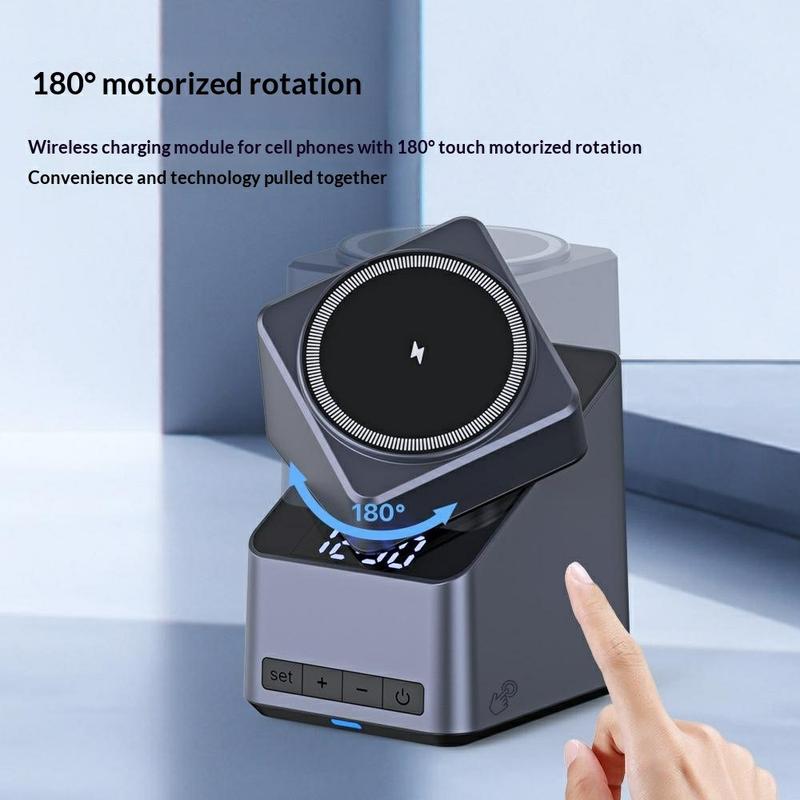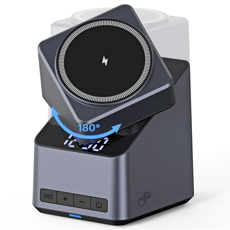 X11 Qi2 15W 3-i-1 trådlös laddningsstation med LED-klocka - roterande magnetisk laddningsstation för telefon, klocka och hörlurar