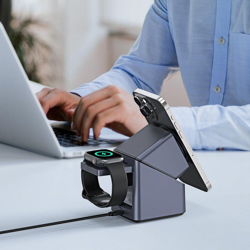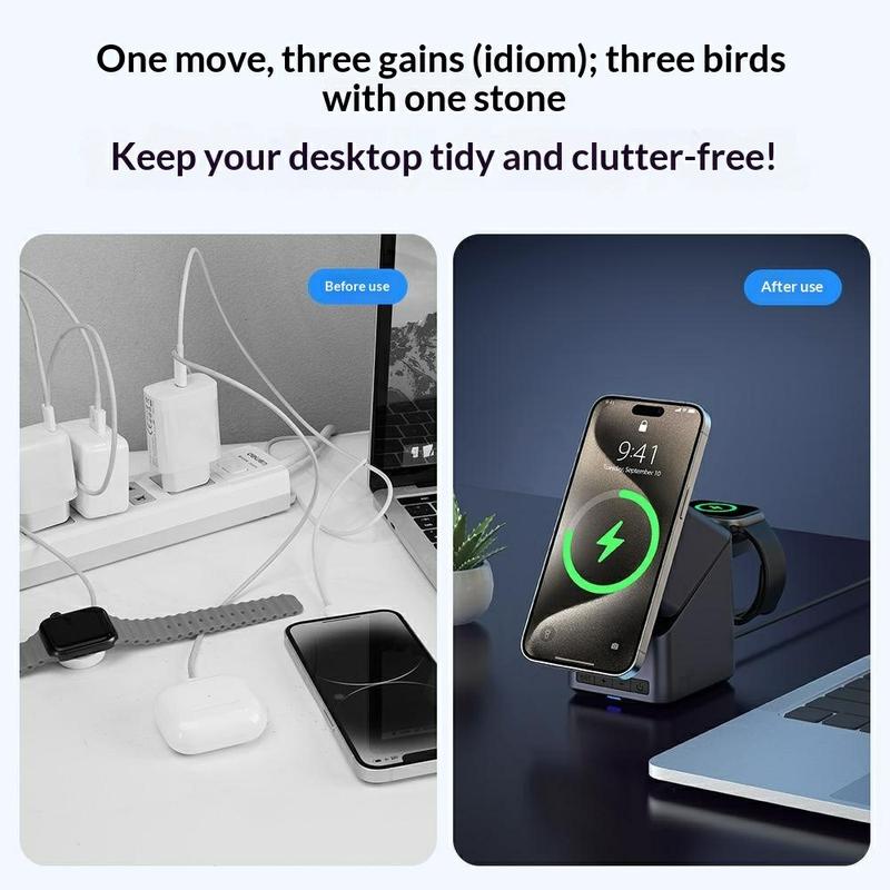 - 3-i-1-laddning för telefon, smartklocka och öronsnäckor