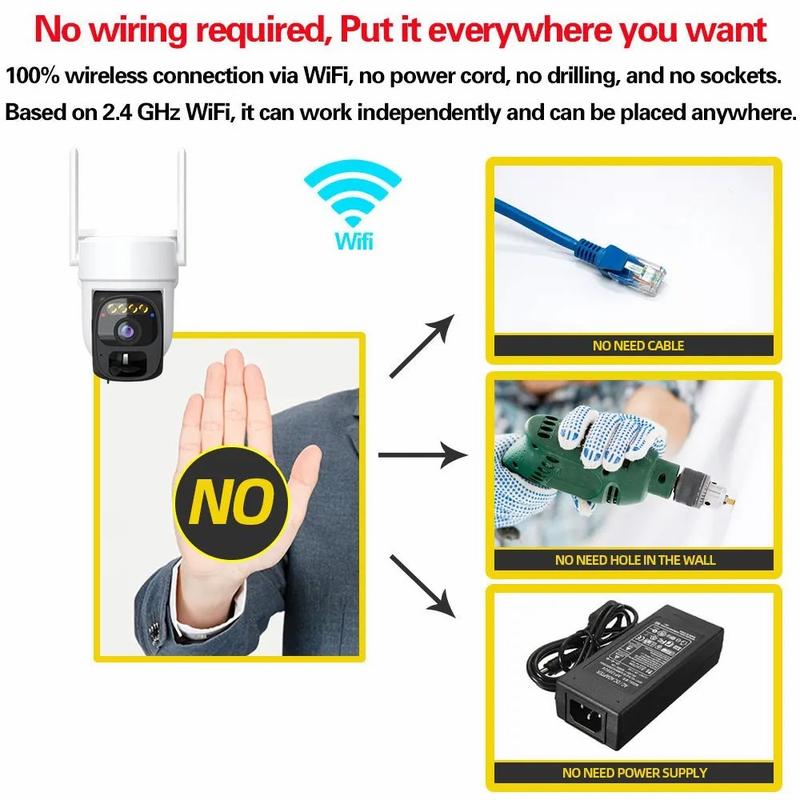 - Pan-Tilt Control & AI Tracking - 90 ° horisontell / 105 ° diagonal täckning plus intelligent humanoiddetektering som följer inkräktare och filtrerar falsklarm från husdjur eller svajande träd.