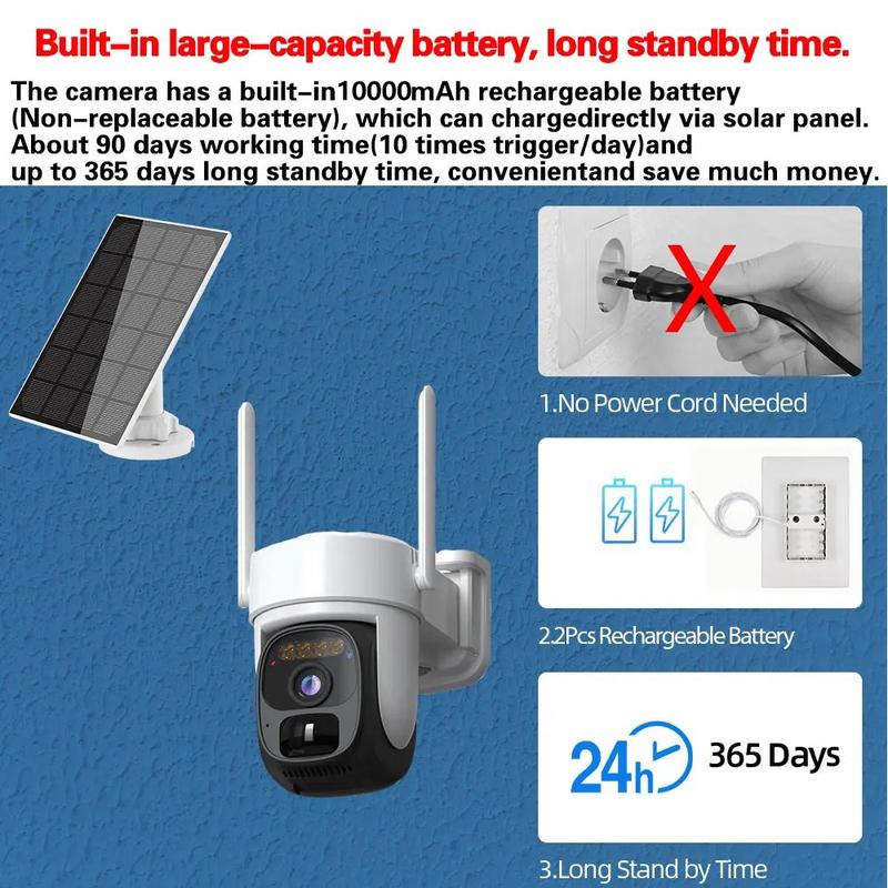 Många "trådlösa" kameror behöver fortfarande laddas varje vecka eller offrar upplösning för batteritid. X3:s soloptimerade chipset vaknar endast när rörelse utlöses och utnyttjar varje milliampere samtidigt som 2 K-klarheten bevaras. Lägg till IP66-tålighet, tvåvägskommunikation, AI-larmfiltrering och visning för flera användare, så täcker du mer mark med färre enheter och utan löpande energikostnader.