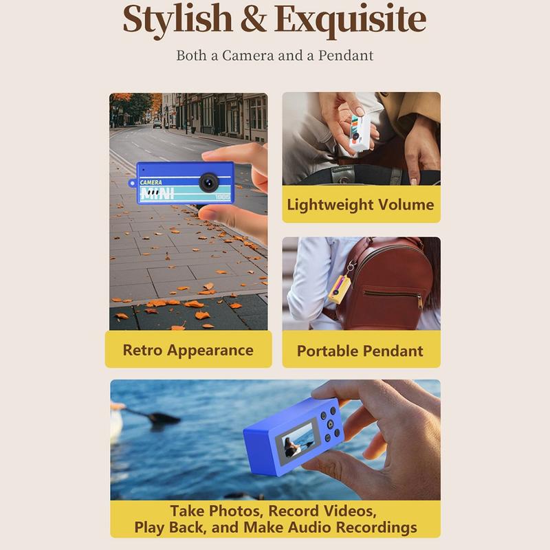 Fånga roliga ögonblick var som helst med X7 retro mini-tumkameran. Denna lätta digitalkamera har en kompakt, fickvänlig storlek och en nostalgisk stil, samtidigt som den erbjuder modern 1080p Full HD-inspelning. Den inbyggda 0,96-tums IPS-färgskärmen möjliggör snabb förhandsgranskning och uppspelning, vilket gör det enkelt att direkt kolla bilder och videor.