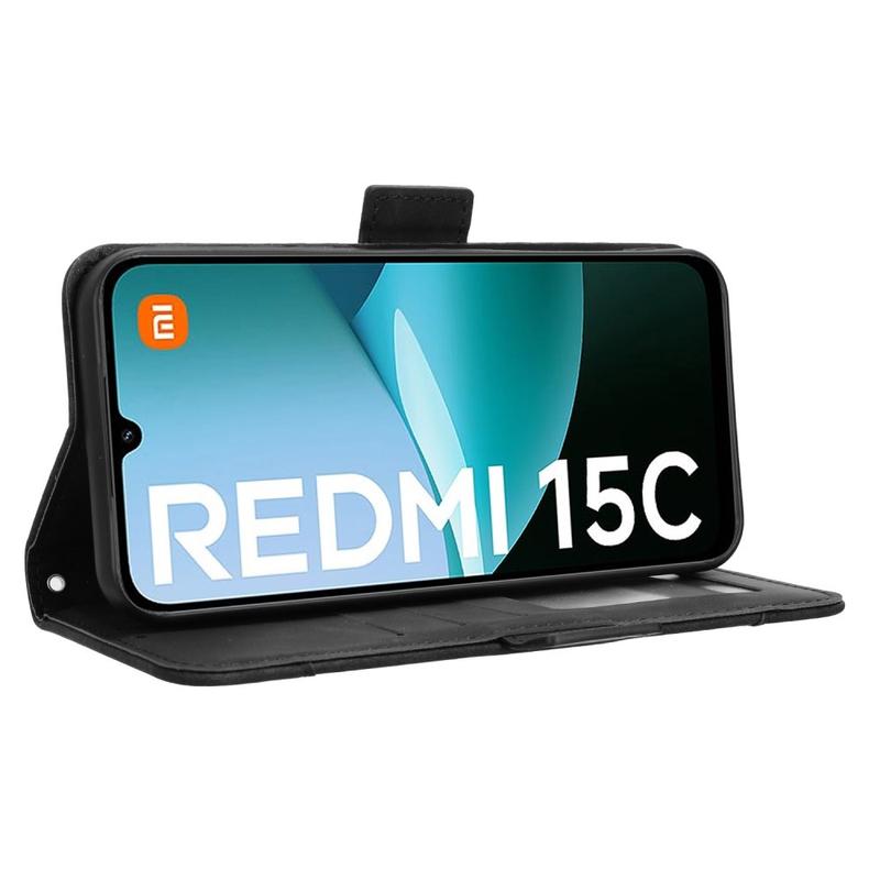 Korthållare plånboksfodral med flera kortplatser för Xiaomi Redmi 15C, premium telefonskal och korthållare
