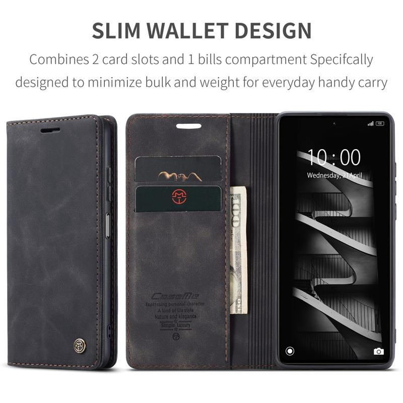 - Inbyggda magneter som ser till att hålla Caseme 013 Series plånboksfodral stängt