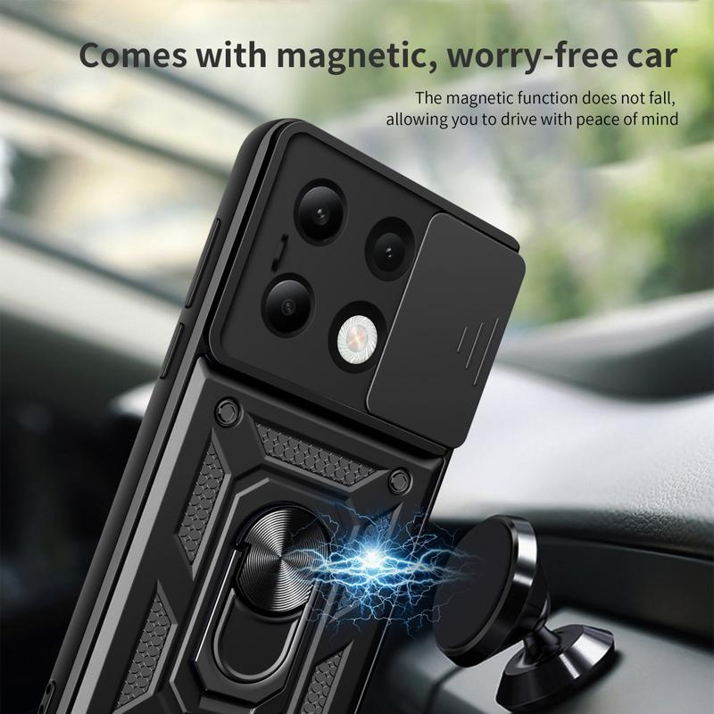 Konstruerad med förstklassig plast, TPU och metallmaterial, är detta fodral för Xiaomi Redmi Note 13 4G designat för att stå emot tidens prövning och ge skydd. Med flera funktioner skyddar det din Xiaomi Redmi Note 13 4G perfekt och gör den även bekväm att använda och titta på tack vare den roterande ringen på baksidan.