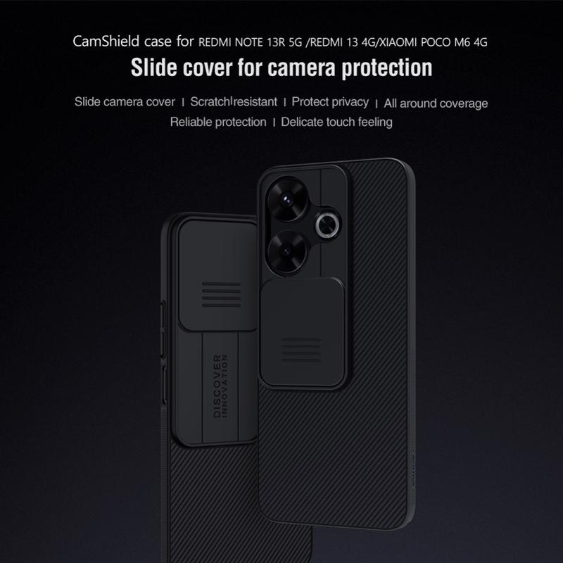 - Innovativt Nillkin CamShield skal för Xiaomi Redmi Note 13R, Redmi 13, Poco M6 4G