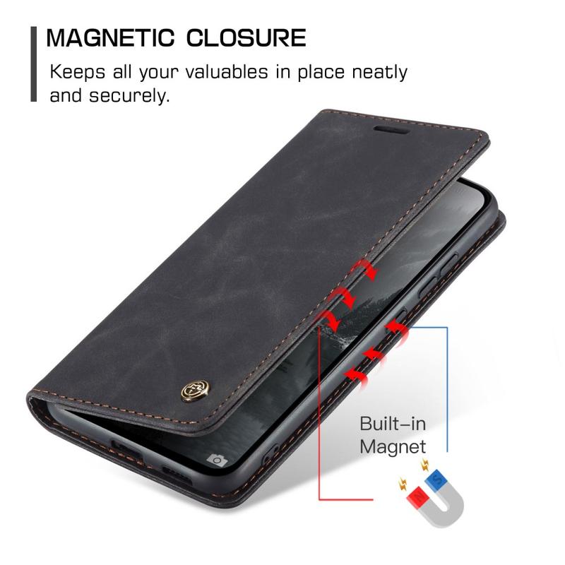 - Inbyggda magneter som ser till att hålla Caseme 013 Series plånboksfodral stängt