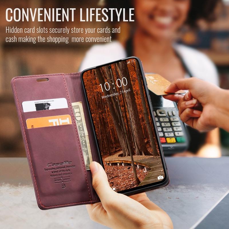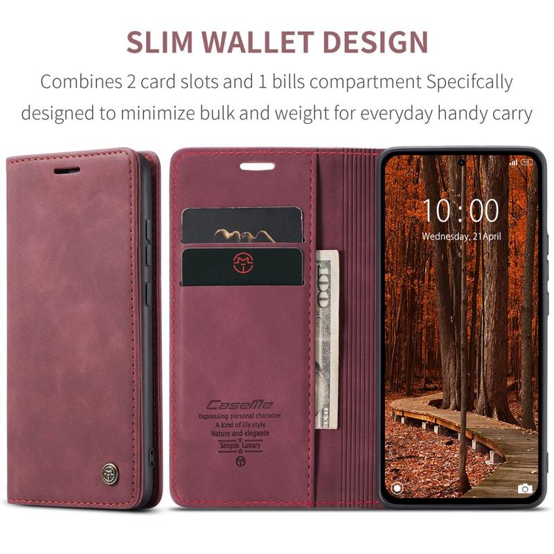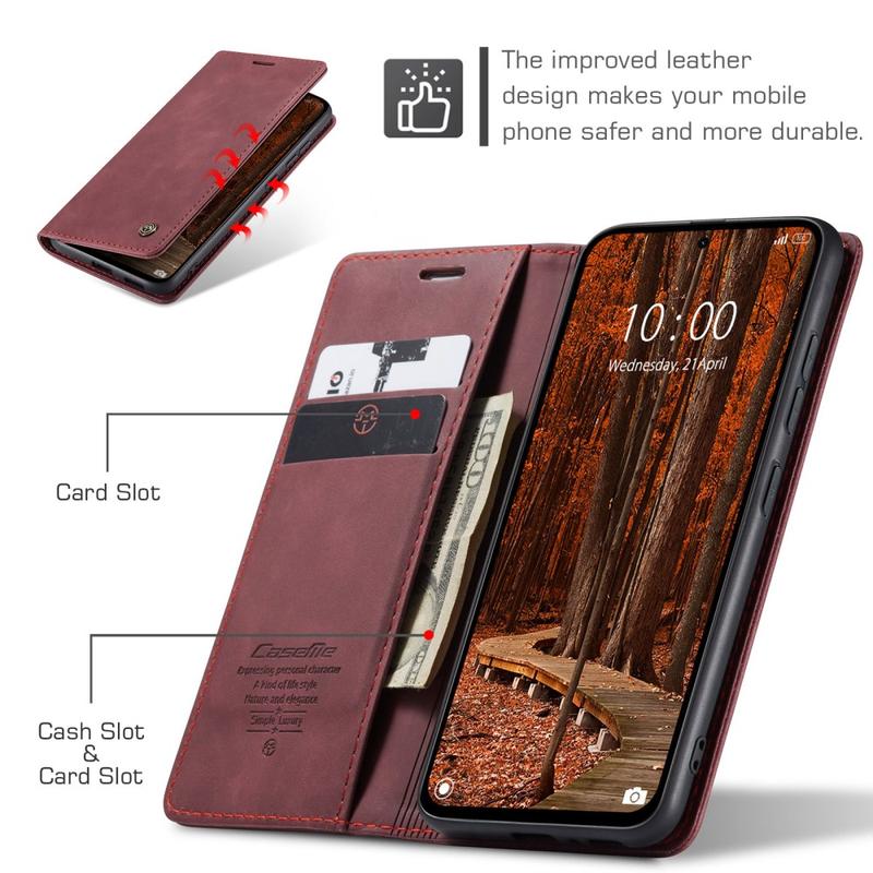- Inbyggda magneter som ser till att hålla Caseme 013 Series plånboksfodral stängt