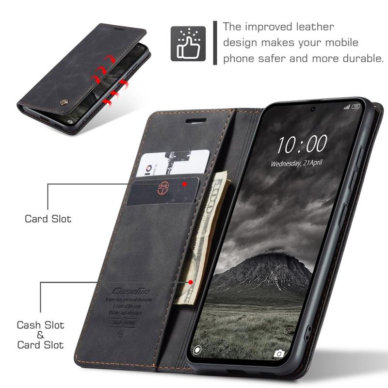 - Inbyggda magneter som ser till att hålla Caseme 013 Series plånboksfodral stängt