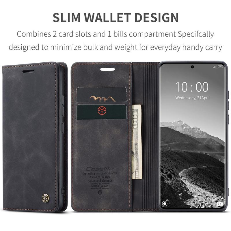 - Inbyggda magneter som ser till att hålla Caseme 013 Series plånboksfodral stängt