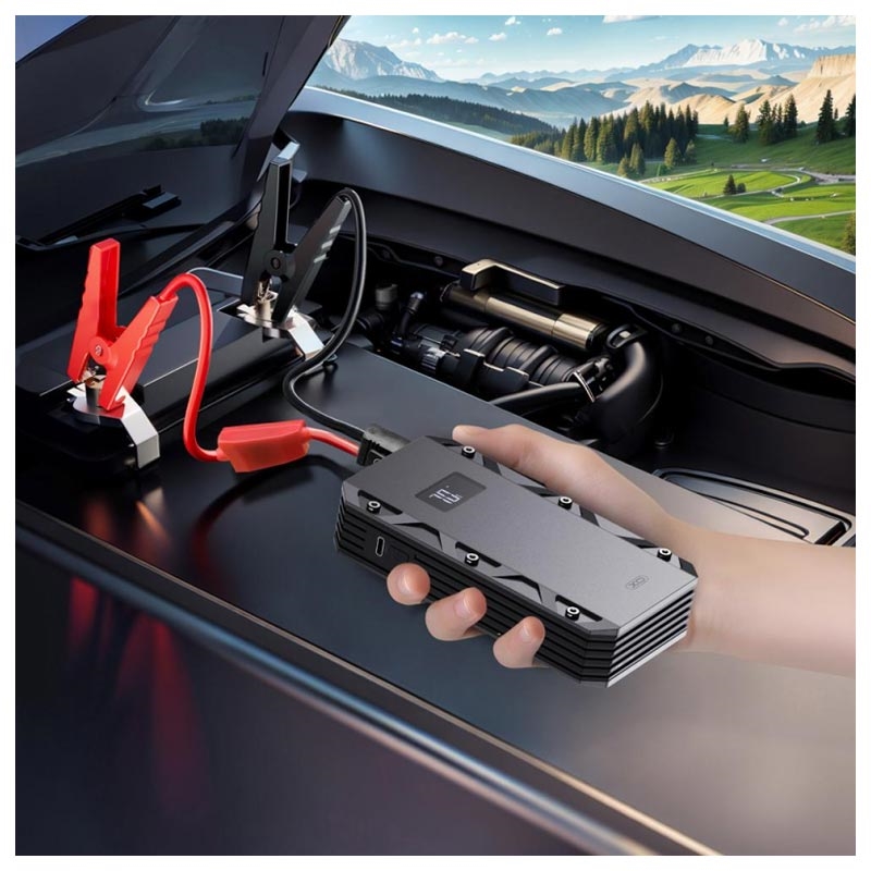 XO CZ025 3-i-1 starthjälp för bil och powerbank 10000 mAh (37 Wh) - 500 A startström, USB-C, LED-ficklampa
