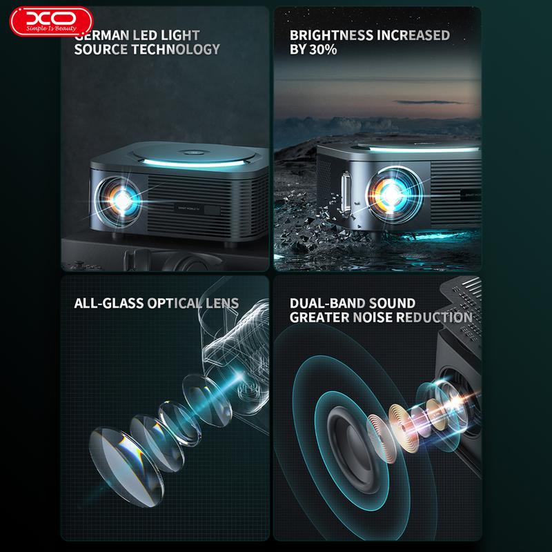 Investera i XO FF01 120-tums Full HD LED-projektor för att njuta av mångsidiga, högkvalitativa projektioner för alla dina visningsbehov.