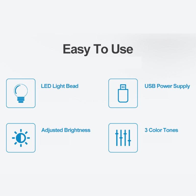 - LED-effektivitet på 5 V gör att lampan drar mindre än 0,5 A vid medelhög ljusstyrka, vilket är säkert för powerbanks i telefonen