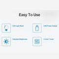 - Steglös dimning via inbyggd USB-styrenhet; ljusstyrka från mjuk fyllning till studiobländning