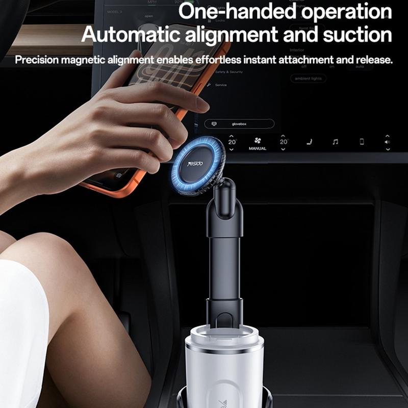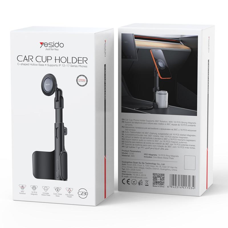 Yesido C230 har en smart design som gör att du kan använda din mugghållare samtidigt som telefonen sitter säkert fast. Med kraftfulla magneter, flexibel rotation och enkel enhandsmanövrering erbjuder den en bekväm och säker lösning för förare som är beroende av sin telefon för navigering och kommunikation.