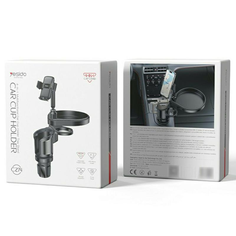 Yesido C274 4-i-1 Multifunktionell bilmuggshållare - matbricka, expanderbart dryckesställ och justerbar telefonhållare