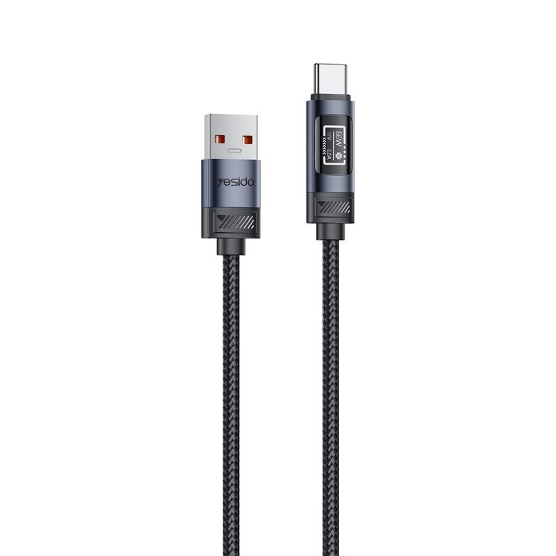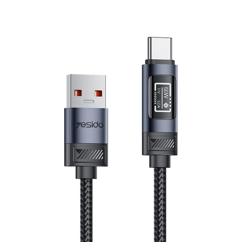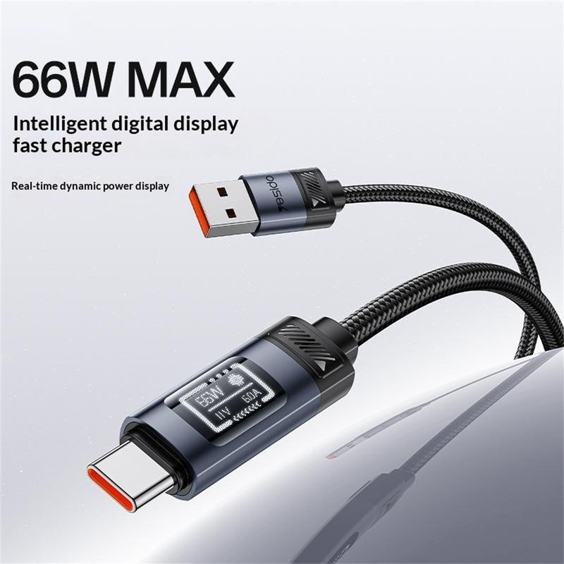 Yesido CA138C 66W snabbladdningskabel - USB-A till USB-C, datakabel med nylonflätning och digital OLED-display - 1.2m