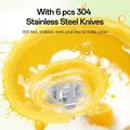 - 360° täckning med blad: Geometrin med sex blad skapar en "tornado"-virvel - inga fruktbitar lämnas kvar.