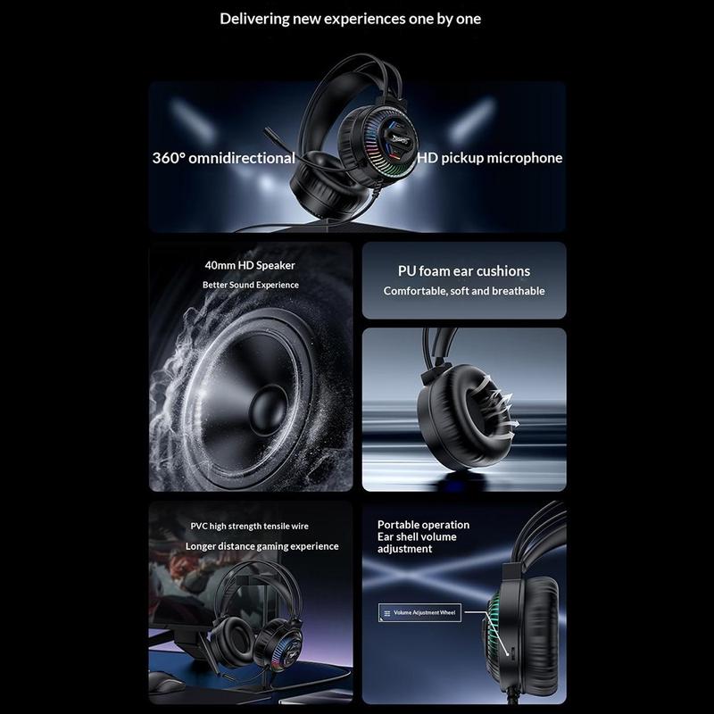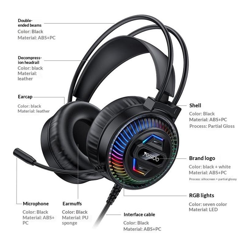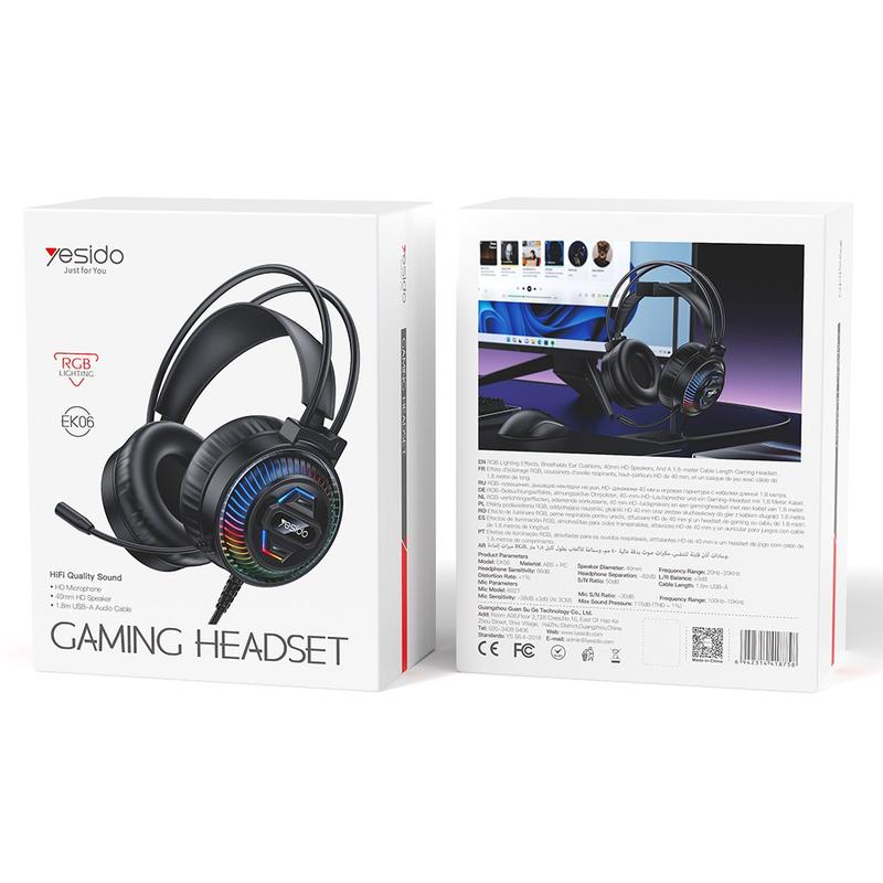 Yesido EK06 - trådbundet RGB-gamingheadset med 40 mm HD-högtalare och 360°-mikrofon för PC