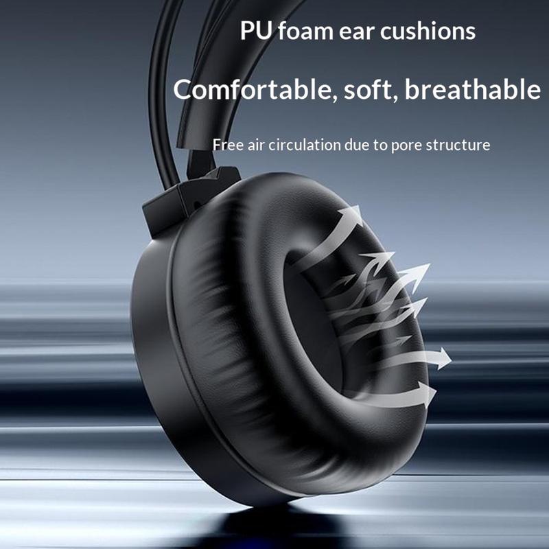 YESIDO EK06 är konstruerat med komfort i åtanke för längre användning. Det självjusterande huvudbandet använder en mikroelastisk dekompressionsdesign som anpassar sig efter olika huvudformer, vilket hjälper till att minska trycket under långa spelsessioner. Mjuka öronkuddar av PU-skum med en porös struktur som andas stödjer luftflödet och hjälper till att förbättra komforten, vilket gör headsetet lättare att bära under längre perioder av spel, chatt eller medieanvändning.