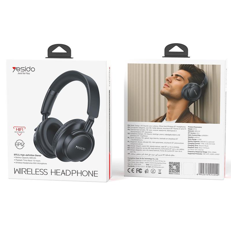 Yesido EP12 Over-Ear Bluetooth-hörlurar - tryckfri komfort, dubbelt trådbundet/trådlöst läge, stöd för röstassistent