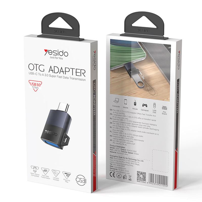 Yesido GS31 USB 3.0 till USB-C OTG-adapter - 18W snabbladdande omvandlare i aluminiumlegering