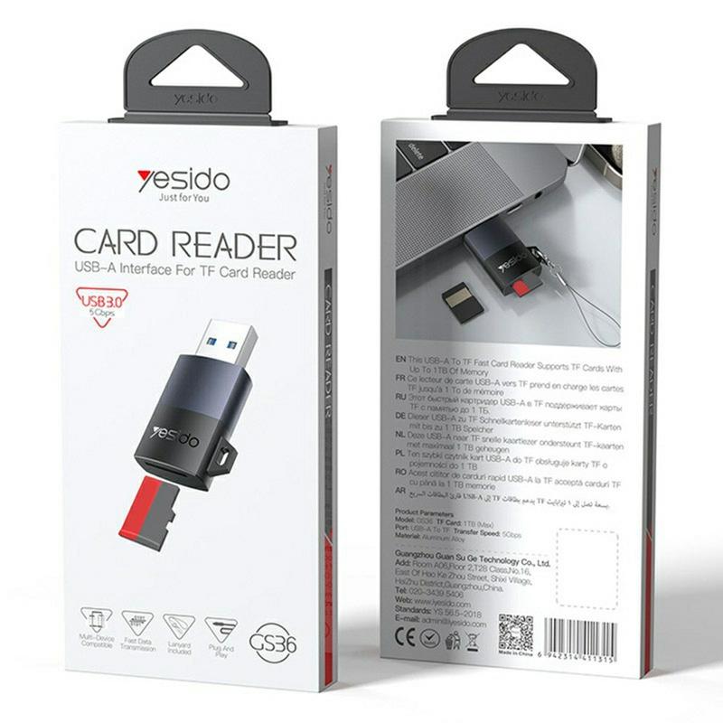 Yesido GS36 USB 3.0 TF-kortläsare - 5Gbps Plug-and-Play-adapter i aluminiumlegering