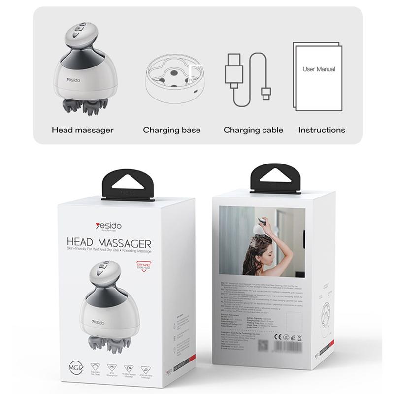 YESIDO MG12 IPX7 vattentät huvudmassageapparat med låg ljudnivå och avtagbar laddningsdocka