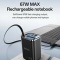 - 67 W snabbladdningseffekt - ger snabb laddning via den inbyggda infällbara typ C-kabeln, vilket ger snabb energitillförsel till smartphones, surfplattor och andra USB-drivna enheter.