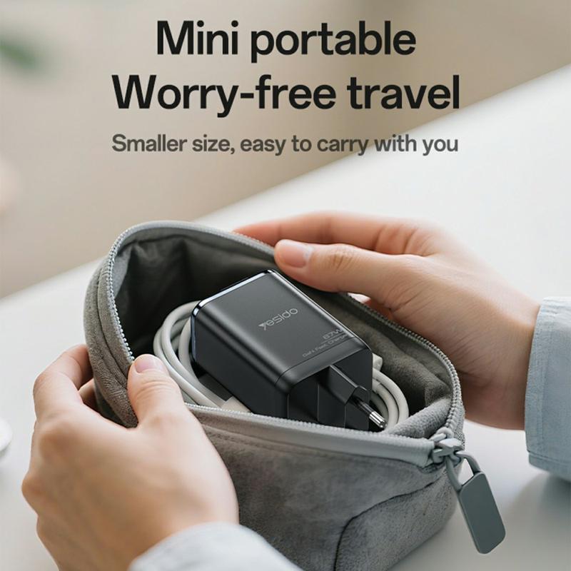 YESIDO YC100 kombinerar snabbhet, bärbarhet och säkerhet i en elegant design. Den infällbara Type-C-kabeln eliminerar röran, medan GaN-chipsetet säkerställer effektiv och sval prestanda - vilket gör den till den perfekta rese- och vardagsladdaren.