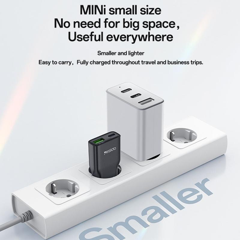 Ladda smartare och resa lättare med den ultratunna väggladdaren Yesido YC112. Denna kompakta adapter med två portar är utformad för att underlätta vardagen och kombinerar en USB-C-port och en USB-A-port i en smal design som enkelt får plats i väskor, fickor, skrivbordslådor och reseset. Det är en praktisk lösning för användare som vill ha en enda laddare för både nyare USB-C-enheter och äldre USB-A-kablar, utan att behöva bära med sig en skrymmande adapter.
