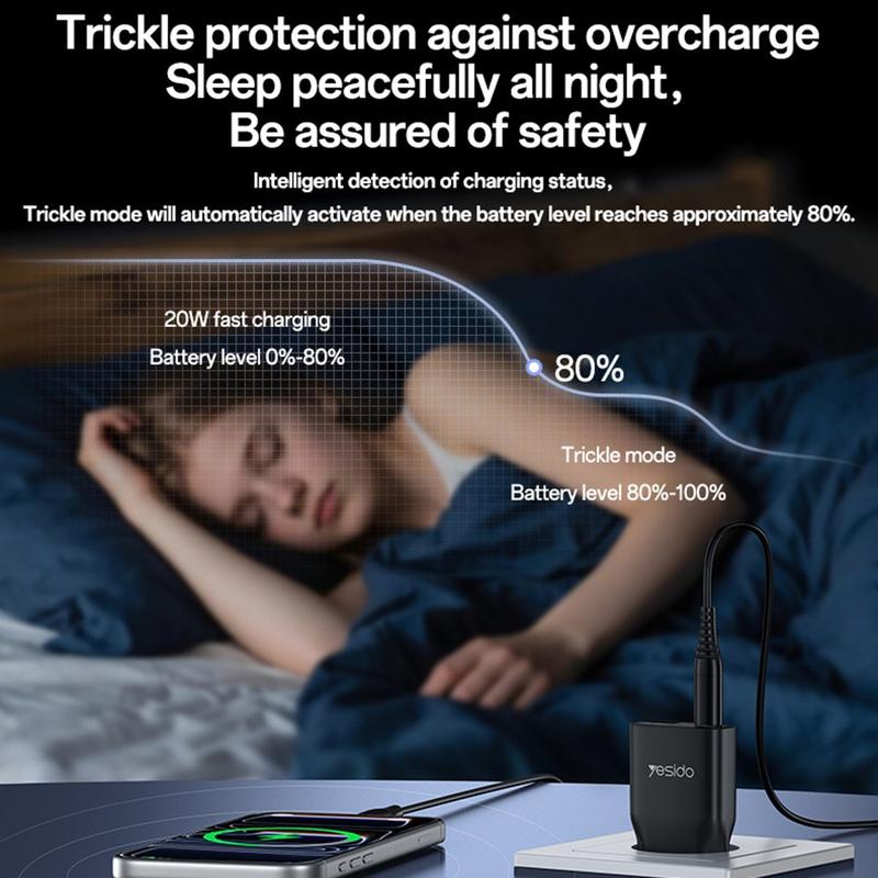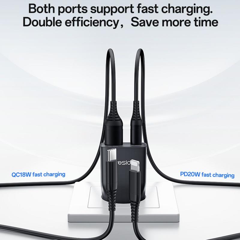 USB-C-porten stöder snabbladdning på upp till 20W, vilket gör den idealisk för smartphones, mindre surfplattor, öronsnäckor och andra kompatibla enheter. USB-A-porten stöder också snabbladdning upp till 18 W, och när båda portarna används samtidigt ger laddaren en stabil delad utgång för två enheter. YC112 är byggd med stöd för PD- och QC-protokoll för snabbladdning och hjälper till att leverera effektiv och säker laddning samtidigt som onödig värme och energiförlust minskas.