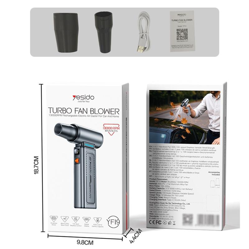 Yesido YF19 Handhållen fläkt / dammsugare - 130000 RPM höghastighets trådlös luftblåsare / fläkt / dammsugare