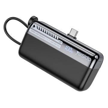 Yesido YP99 10000mAh powerbank med 22,5 W snabbladdning, inbyggd USB-C-till-Lightning-kabel och digital display