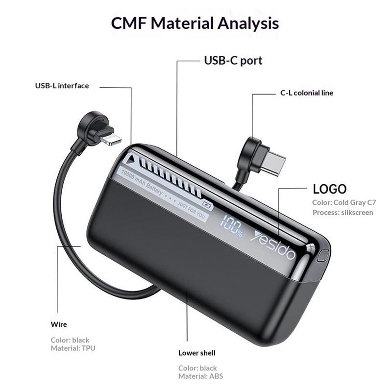 YP99 är tillverkad av PC, UV-belagda och galvaniserade material med ett ABS-hölje och TPU-kabel, och är utformad för att kombinera bärbarhet med hållbarhet. Den släta cylindriska kroppen ger den ett modernt utseende samtidigt som den är lätt att hålla och packa. Anslutningarna är utformade för att klara upp till 10 000 anslutningscykler, vilket bidrar till en längre livslängd vid daglig användning.