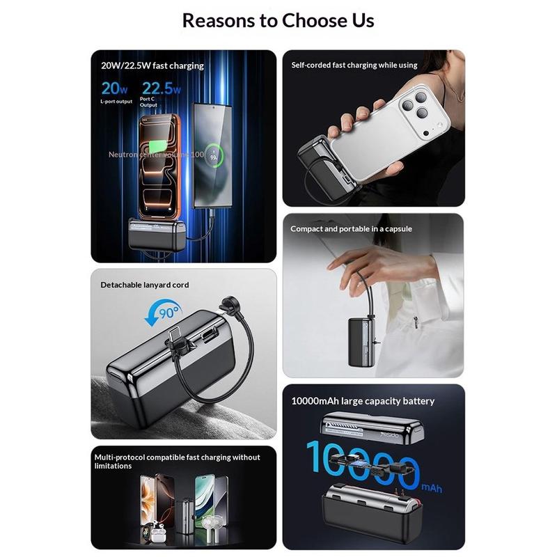 Powerbanks med inbyggda kablar har blivit mer populära eftersom de förenklar mobil laddning och minskar kabeltrassel. Modeller på omkring 10000mAh föredras ofta eftersom de erbjuder en praktisk balans mellan kapacitet och bärbarhet. Stöd för snabbladdning och digitala batteridisplayer är också mycket uppskattade funktioner, eftersom de hjälper användarna att ladda mer effektivt och hålla bättre koll på återstående batterinivå.