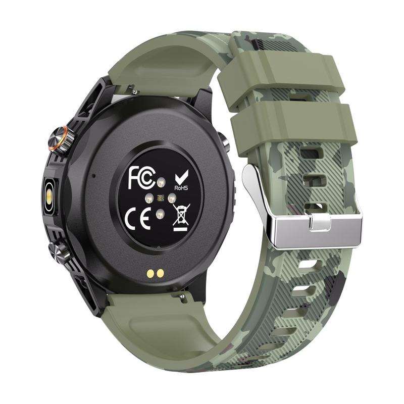 Klockan är utformad för utomhusäventyr och har en inbyggd ficklampa, GPS-positionering och en digital kompass som hjälper dig att navigera på stigar och spåra dina rutter med säkerhet. Dess 580 mAh högkapacitetsbatteri ger långvarig prestanda, vilket ger upp till 40 dagars standbytid och cirka 7 dagars regelbunden användning. Med en IP68-vattentäthetsklassning klarar den regn, stänk och simning utan problem.