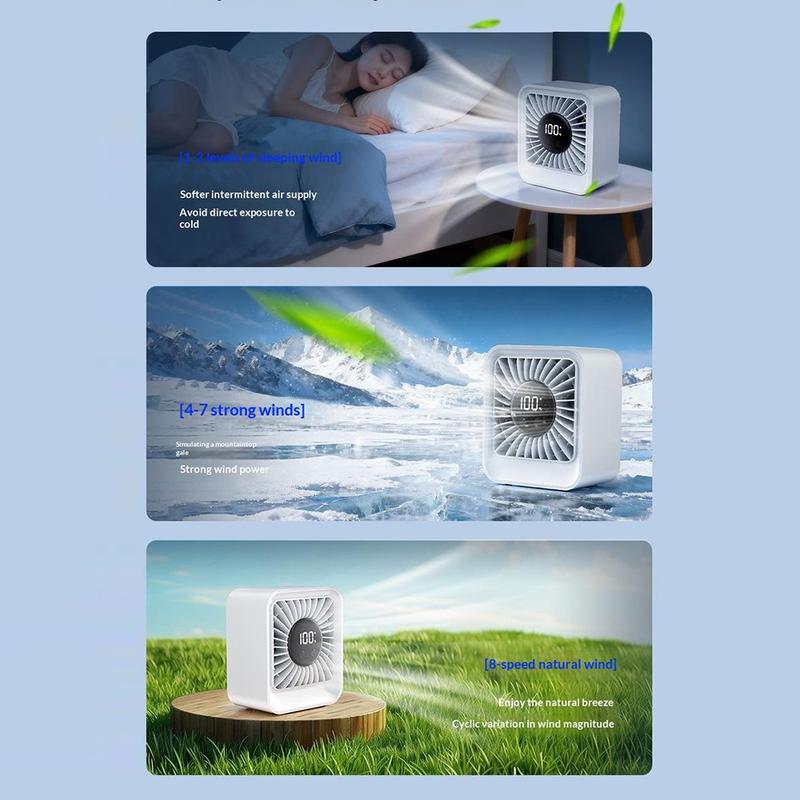 Skapa en behagligare miljö med bordsfläkten YS-G7, en praktisk uppladdningsbar bordsfläkt avsedd för hemmet, kontoret, sängbordet och arbetsrummet. Tack vare sin kompakta storlek är den enkel att placera på ett skrivbord, en hylla eller ett sängbord, medan det inbyggda batteriet på 8000 mAh ger dig större flexibilitet utan att du behöver ha den ansluten till elnätet hela tiden. Med åtta justerbara hastighetsnivåer passar denna fläkt både för ett svagt luftflöde och kraftfullare kylning under varmare dagar.
