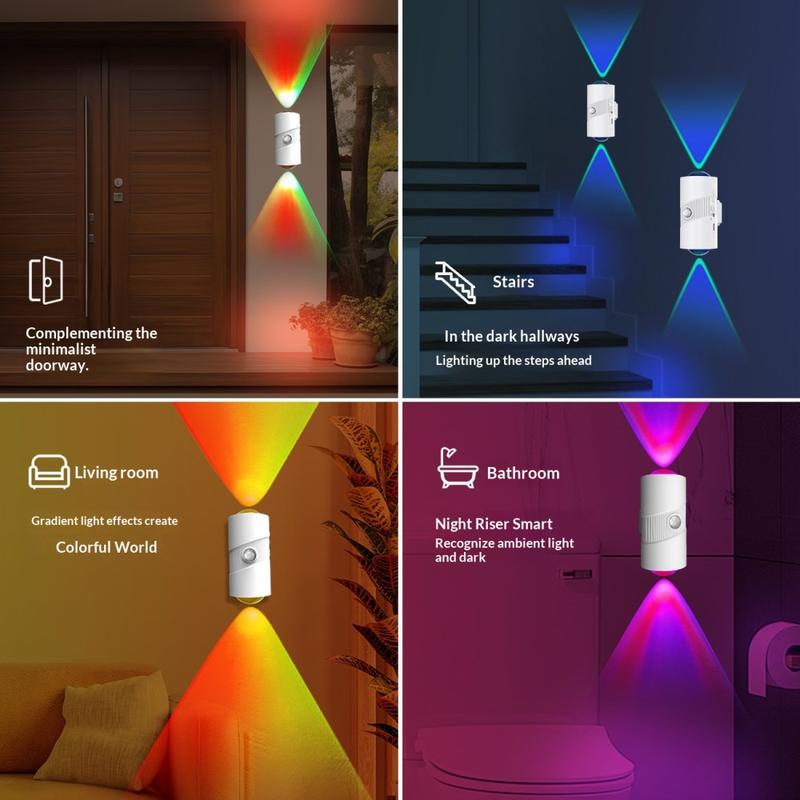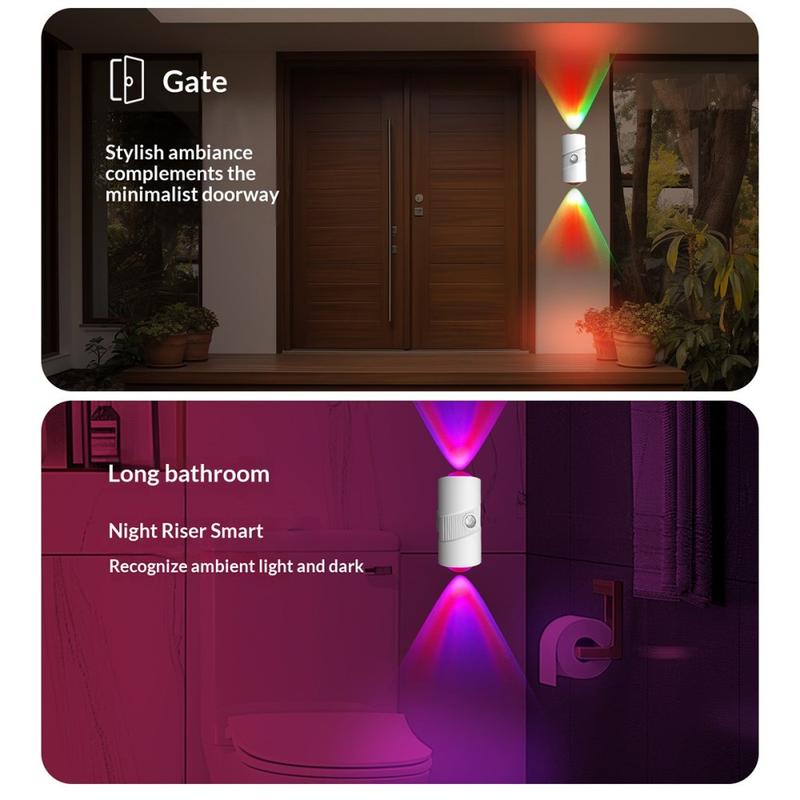 Ge ditt hem praktisk belysning och en mjuk, dekorativ touch med det smarta rörelsesensor-nattlampan YSJ-008A RGB. Denna kompakta vägglampa är utformad för hallar, sovrum, garderober, badrum och entréer och kombinerar automatisk rörelsesensor, justerbar ljusstyrka och färgglada RGB-ljuseffekter i en praktisk, uppladdningsbar enhet.