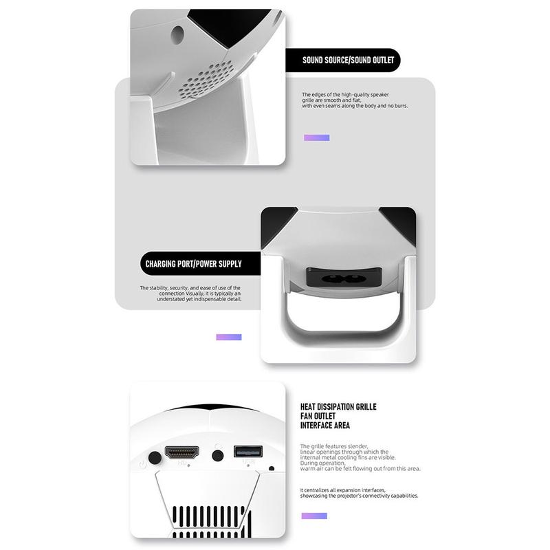 Miniprojektorn YT600 i fotbollsdesign kombinerar smart underhållning med en lekfull, kompakt formfaktor. Den drivs av Android 13.0 och ger dig omedelbar tillgång till populära streamingappar utan behov av externa enheter. Med HD-upplösning, jämn prestanda och modern trådlös anslutning är det en mångsidig projektor för hemmabio, sportkvällar, spel eller tillfällig utomhusanvändning.