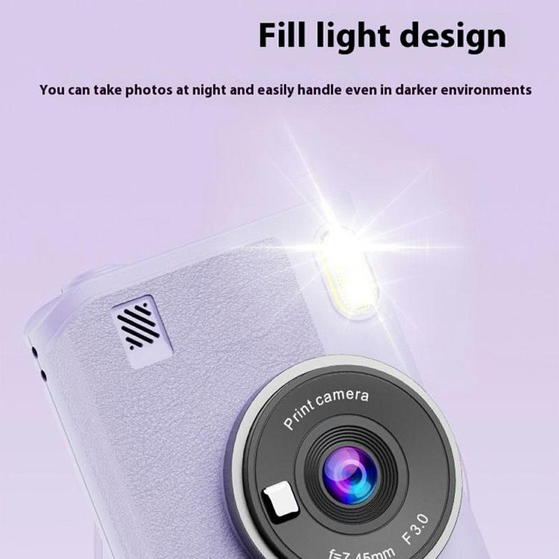 Den här barnkameran är utrustad med en inbyggd fyllnadslampa som gör det möjligt att fotografera i svagt ljus och nattetid, vilket garanterar ljusa och tydliga bilder när som helst.