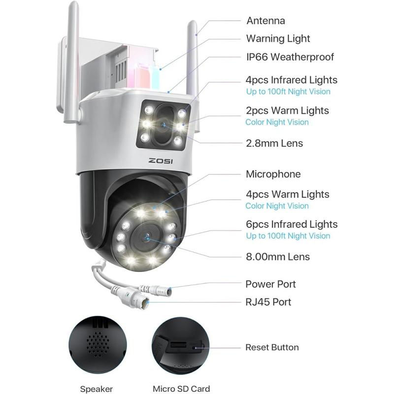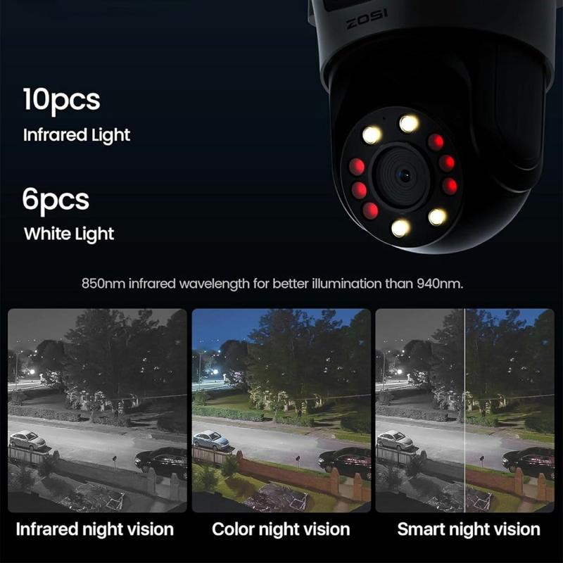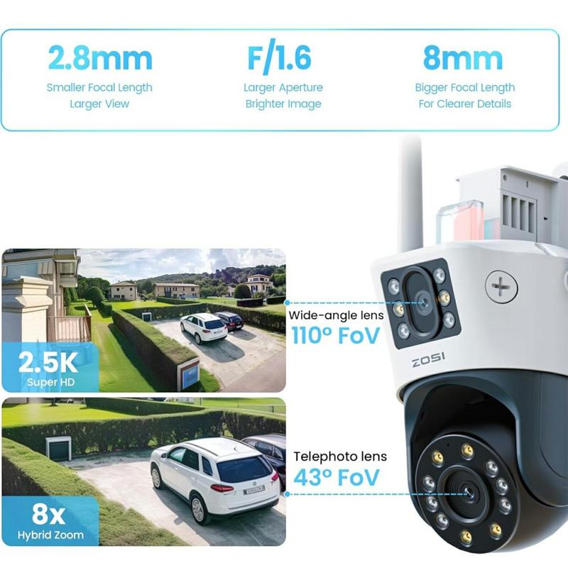 Ge varje hörn av din uppfart, trädgård eller butiksfasad skydd 24/7. ZOSI C298Pro kombinerar två skarpa 8-megapixelobjektiv med full 355 ° panorering / 140 ° lutningsrörelse, så en vädertätad enhet ger svepande täckning, rakbladsdetaljerade närbilder och nattbilder i äkta färg - allt strömmat direkt till din telefon på några sekunder.