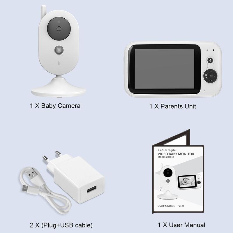 ZR303B Babymonitor med 3,2-tums LCD-skärm, 2,4 GHz FHSS, tvåvägskommunikation, mörkerseende och temperaturvarning